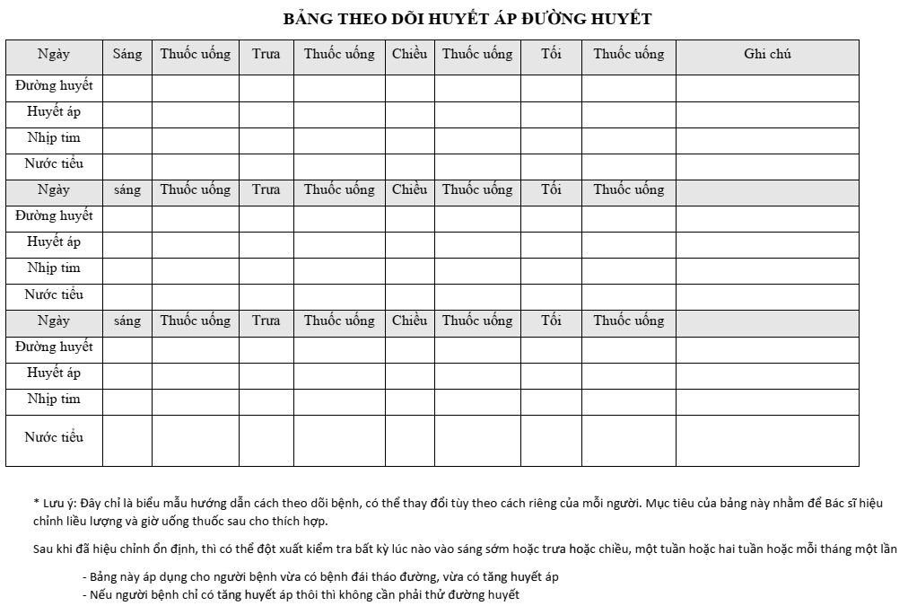 - Đối với bệnh nhân có bệnh nền (tăng huyết áp, hoặc đái tháo đường hoặc bệnh lý tim mạch…) cần phải biết cách theo dõi bệnh tại nhà (xem mẫu theo dõi bệnh)
